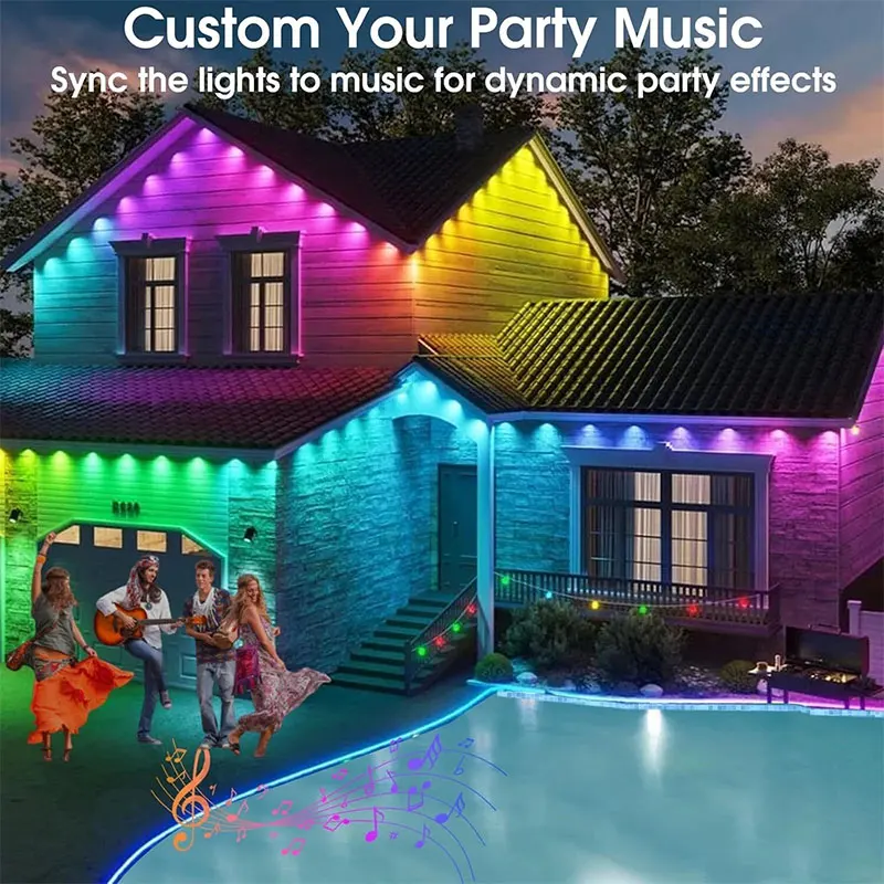 200FT 120LEDs Smart RGBIC DIY Eave Lights Permanent Outdoor LED Light App Control Music Sync Timer Christmas New Year Lighting