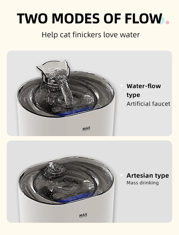 2 Water flow modes, providing clean running water, make your pets happier and healthier.
