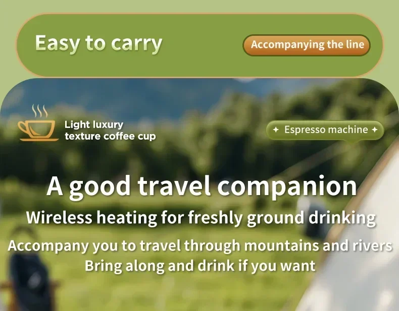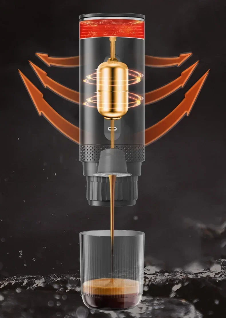 ● Battery wireless heating, no need to bring your own hot water, a cup of espresso anytime, anywhere